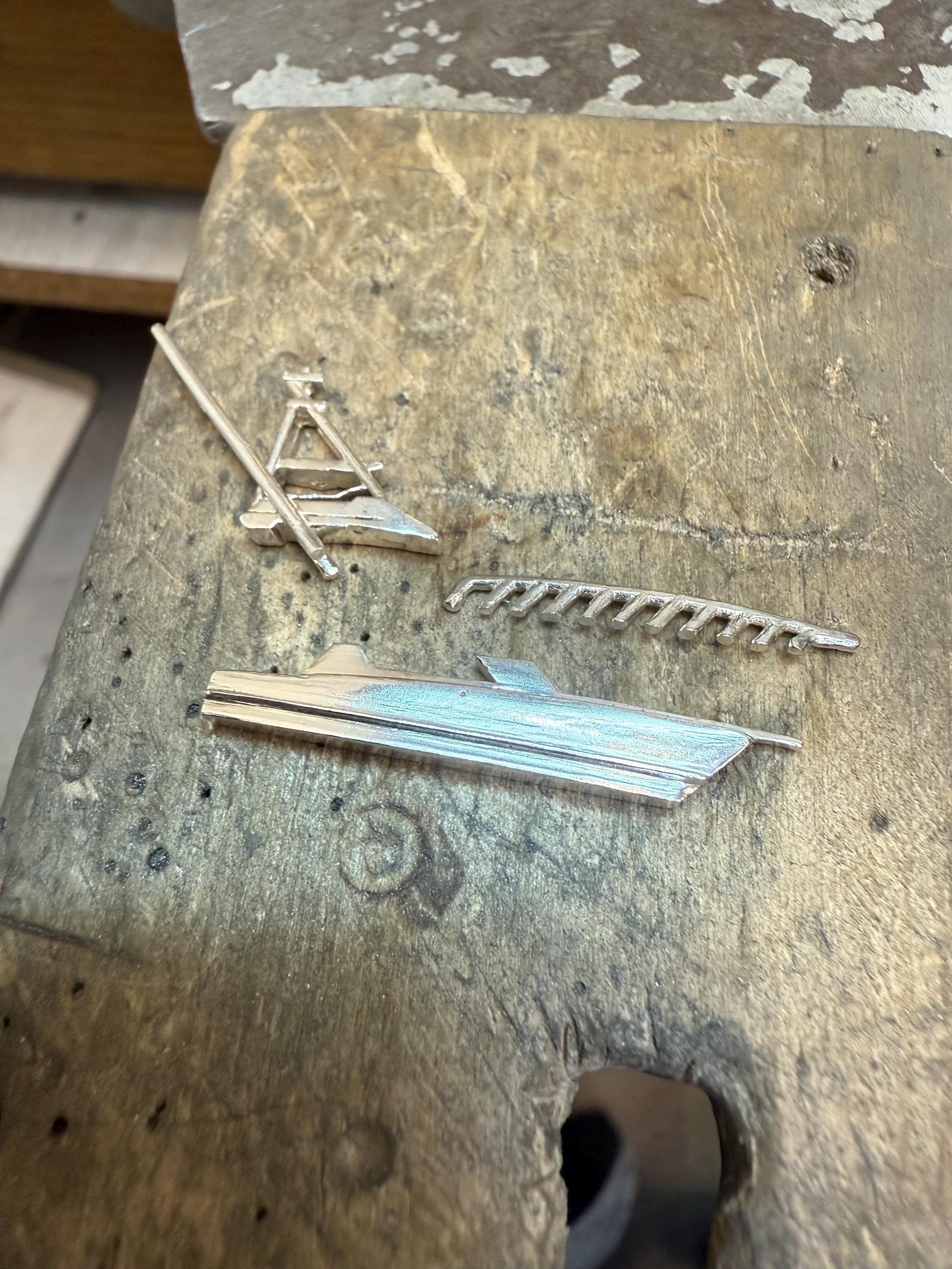 Capture the spirit of the open ocean with this handcrafted sterling silver pendant inspired by the iconic 1995 Hatteras 54’ Sport Yacht. Meticulously 3D-designed and lost-wax cast, this piece showcases crisp details from bow to stern.